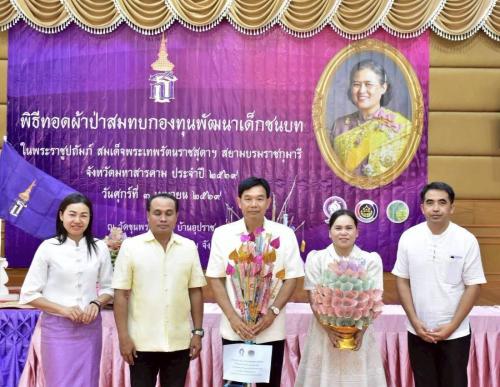 พช.นาดูน จังหวัดมหาสารคาม ร่วมพิธีทอดผ้าป่าสมทบกองทุนพัฒนาเด็กชนบท ในพระราชูปถัมภ์สมเด็จพระเทพรัตนราชสุดาฯ สยามบรมราชกุมารี